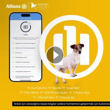 Allianz'ım uygulaması HAYTAP aracılığıyla sokaktaki canlarımızın bakım ve korunmasına destek oluyor. Allianz'ım mobil uygulamasını indirin, birkaç dakika sürecek 'Mutlu Patiler Anketi'ni tamamlayın; sokaktaki dostlarımızın HAYTAP bakımevlerine yerleştirilerek kısırlaştırma, mama, kulübe ve tüm aşılarını içeren bir yıllık ihtiyaçlarını sizin adınıza karşılayalım.