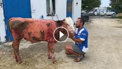 Büyük yangından kurtulan buzağı Ahmet Manavgat'tan, Bursa'daki #haytapemeklihayvanlarçiftliği mize arkadaşları ile birlikte geldi.
