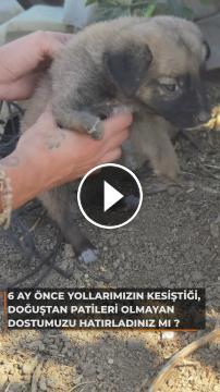 Doğuştan patileri olmayan bu minik dostumuzla İzmir kırsalında besleme yaparken karşılaştık. Bu haliyle dışarıda yaşaması imkânsız olduğu için onu korumamız altına alarak tedavi sürecini tamamlamıştık.