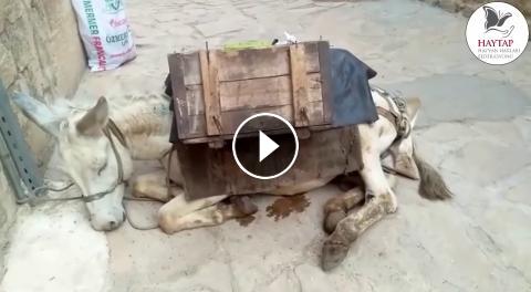 Mardin'deki yaralı, çöpçü, yük taşımaktan yere çökmüş eşek çiftliğimize doğru yola çıktı.